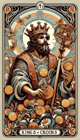 Die Karte 'König der Münzen', auch bekannt als der 'König der Pentakel', ist eine der insgesamt 78 Karten im Tarot-Deck. Sie gehört zur Farbe der Münzen (oder Pentakel), die den Bereich der Materie, des Geldes und des praktischen Lebens repräsentiert. Im Tarot steht der König der Münzen für Fülle, Sicherheit und Meisterschaft im materiellen Bereich.